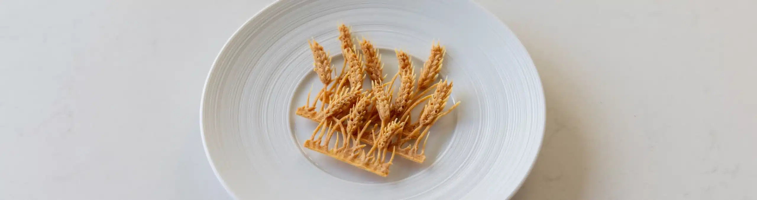 Das Eiweiß mit dem Sonnenblumenöl, der Butter, dem Zucker, dem Salz, dem normalen Mehl und dem Buchweizenmehl vermischen. Das Ganze zu einem glatten Teig verrühren. Dann auf eine Körner-Tuille-Form streichen. Bei 160 Grad Celsius etwa 15 bis 20 Minuten goldbraun backen. Wenn sie noch heiß sind, vorsichtig aus der Form lösen und trocken und abgedeckt aufbewahren.