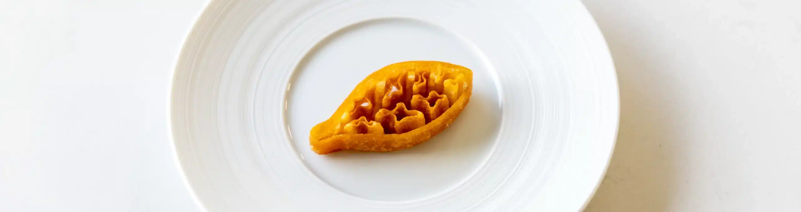 Zuerst die Kerne aus dem Butternusskürbis entfernen und das Fleisch einschneiden. Nun die flache Seite mit Olivenöl beträufeln und die Thymianblätter dazugeben. Dann die flache Seite auf ein mit einer Silikonfolie ausgelegtes Blech legen und bei 180 Grad Celsius 1 Stunde lang backen. Danach das gekochte Fleisch aus dem Kürbis herauskratzen und 80 Gramm in einen Messbecher abmessen. Dann fügen Sie die Gemüsebrühe, die Milch, das Ei und das Salz hinzu. Ein oder zwei Minuten lang pürieren, bis die Masse glatt ist. Dann das Mehl hinzufügen und weitere 30 Sekunden mixen, dann 30 Minuten im Kühlschrank ruhen lassen. In der Zwischenzeit erhitzen Sie etwas Frittieröl auf 180 Grad Celsius zusammen mit die Buñuelo-Briefmarke. Dann den Stempel 5 Sekunden lang vorsichtig in den Teig drücken. Danach etwa 20 Sekunden frittieren, bis sich der Teig vom Stempel löst. Dann frittieren, bis sie goldbraun sind. In der Zwischenzeit können Sie die Buñuelos einfach weiter frittieren. Achte nur darauf, dass der Stempel heiß bleibt. Sonst klebt der Teig. Wenn sich der Buñuelo beim Eintauchen in den Teig aus der Form löst, bedeutet das, dass das Öl zu heiß ist. 180 Grad Celsius ist die perfekte Temperatur. Sobald sie goldbraun sind, aus dem Öl nehmen und trocken und abgedeckt aufbewahren.