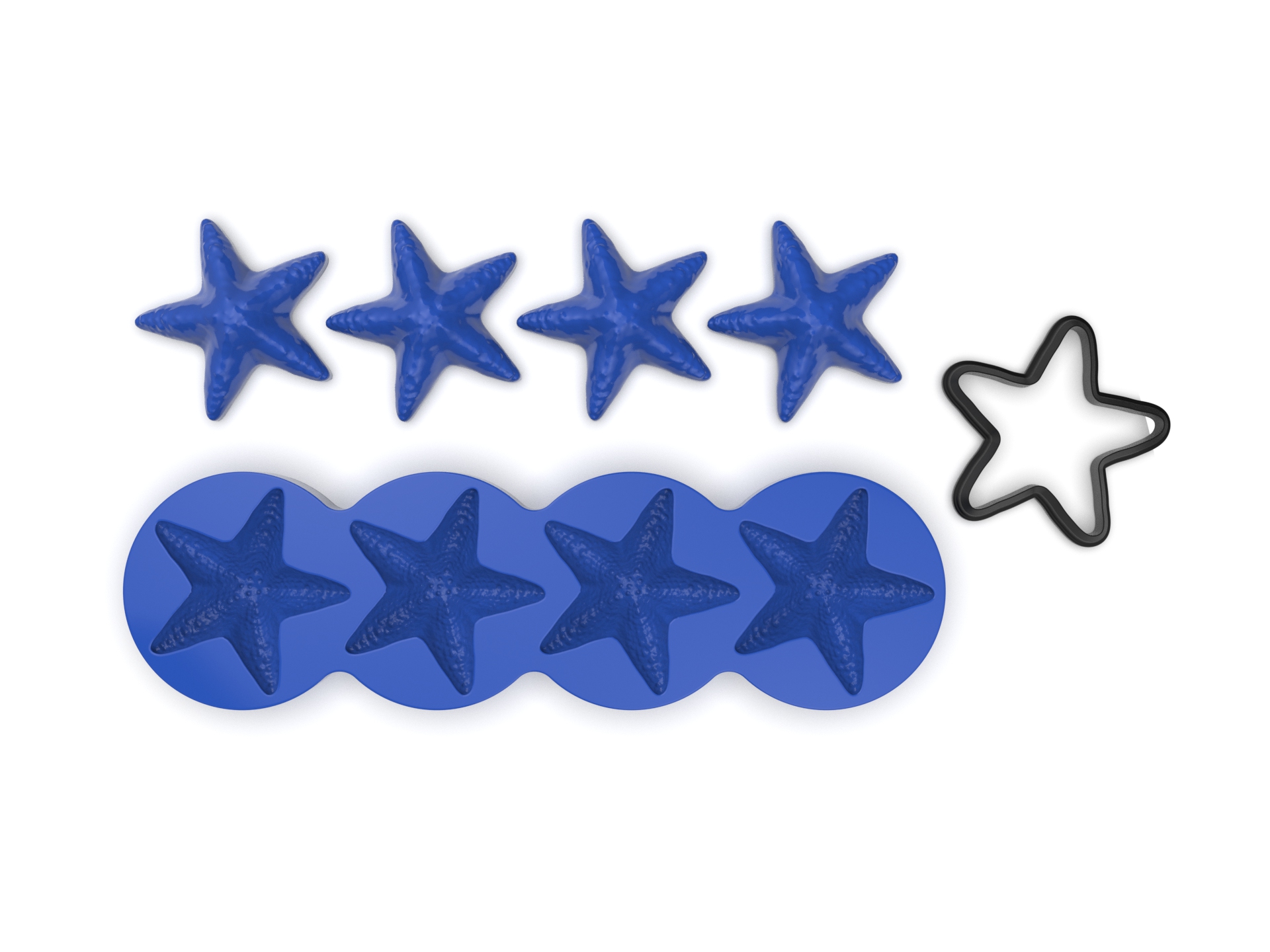 Eine hochwertige Silikonform zur Herstellung von knusprigen Tartelettes in realistischer Seesternform. Die Form backt 4 Tartelettes auf einmal und enthält einen Ausstecher, um den Teig oben auf der Form zuzuschneiden. Sie ist aus lebensmittelechtem Silikon 100% hergestellt und hält -40°C bis +200°C aus, geeignet für (Schock-)Gefrierschränke und Öfen.