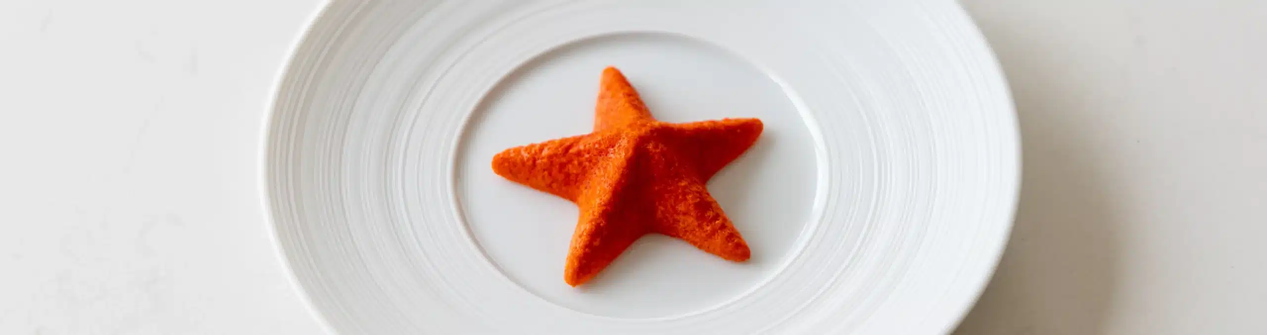 Das Mehl in eine Schüssel geben und die Carabinero-Butter, den Zucker, das Salz, das Eigelb und das Carabinero-Pulver hinzufügen. Dann alles mischen und zu einem schönen Teig kneten. Ich mache das in einer Schüssel, denn das Carabinero färbt die Arbeitsfläche ein und ist sehr schwer zu reinigen. Lass den Teig mindestens 2 Stunden ruhen, bevor du ihn auf einer bemehlten Fläche ausrollst. Schneide ihn mit einem runden Ausstecher aus und drücke die Teigscheiben in die Tartelette-Form. Dann die obere Hälfte der Form auf die untere Hälfte drücken und den überschüssigen Teig mit dem Formausstecher abschneiden. Drücken Sie nun die Form etwas an und backen Sie sie bei 160 Grad Celsius für etwa 50 Minuten. Wenn der Teig vollständig ausgetrocknet ist, können Sie die obere Ebene mit einem Microplane oder einer feinen Reibe raspeln. Hier serviere ich die Tartelettes mit einem aus den Carabinero-Schwänzen geschnittenen Tartar, der mit Salz, Limettenschale und Olivenöl gewürzt ist. Ich habe einen kleinen Klecks gesalzenes Zitrusgel darauf gegeben und es mit gesalzenen Kräutern und Ringelblumenstielen dekoriert.