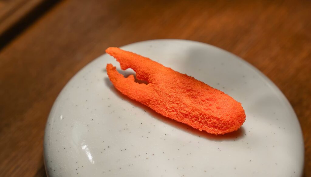 The langoustine claw has been on the menu since day one. It is a fixed element, adjusted seasonally but always recognisable.