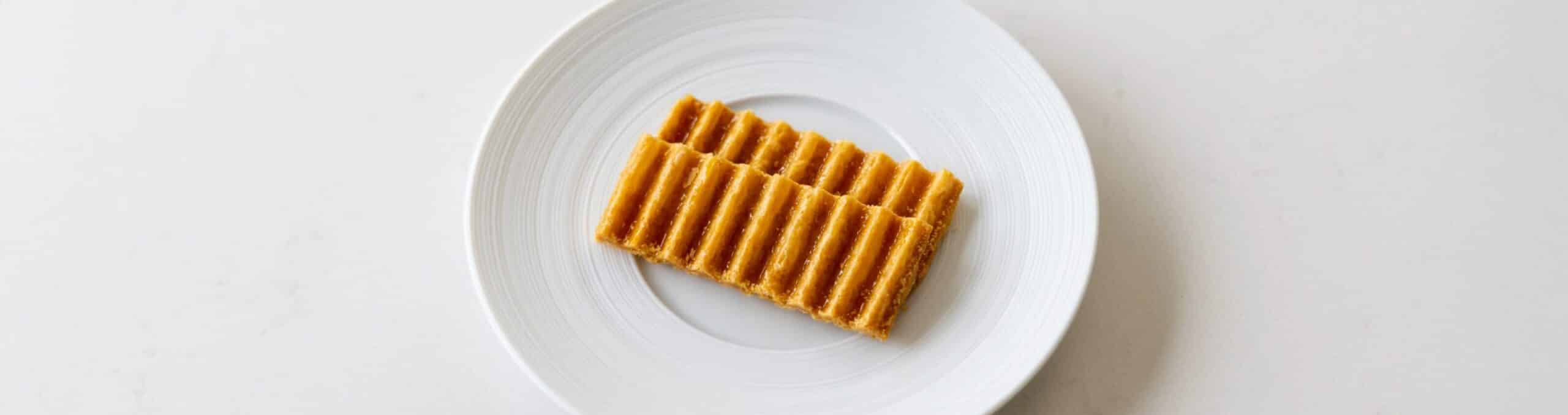 - Voor een elegant effect bak je het deeg tussen 2 golfvormpjes (zie hier voor details) of tussen siliconenvellen met een bakplaat erop.