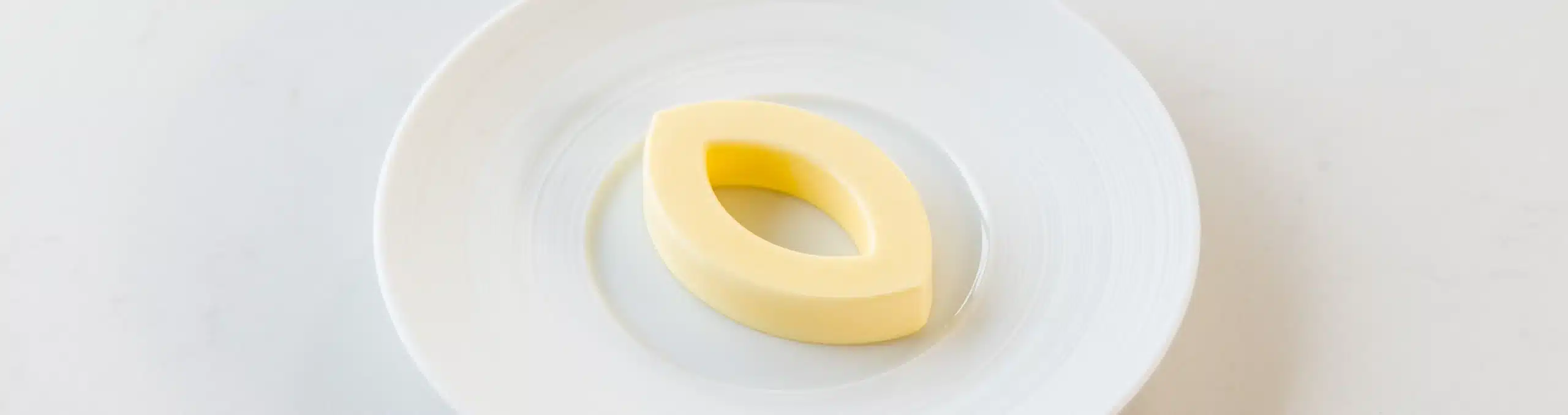 Week eerst de gelatine in koud water. Snijd vervolgens de mandarijnen doormidden en pers ze uit. Passeer daarna het mandarijnensap door een fijne zeef. In totaal heb je 130 gram nodig. Voeg ook de room, de suiker, de eidooier en het maïszetmeel toe. Meng dit goed en verwarm het al roerend tot 85 graden Celsius. Eenmaal ingedikt los je de gelatine op. Vul vervolgens je gewenste vorm. Verwijder nu het teveel aan cremeux en laat het opstijven in de vriezer.