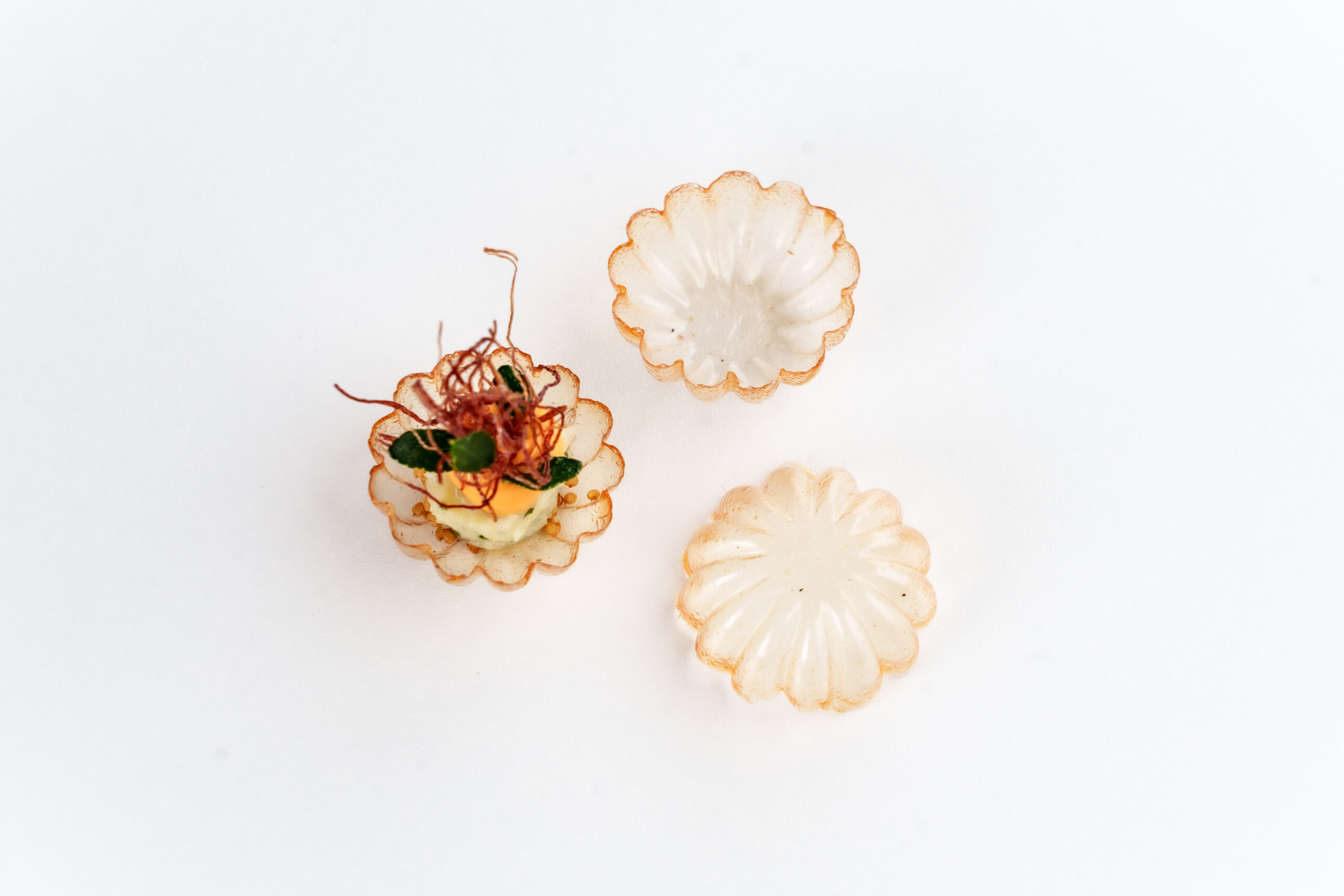 Droog ze een nacht lang op 70 °C. Als ze gedroogd zijn, haal je de cirkels er voorzichtig af en druk je ze in je tartelettevorm terwijl ze nog een beetje warm zijn. Haal ze voorzichtig uit de vorm en serveer ze.