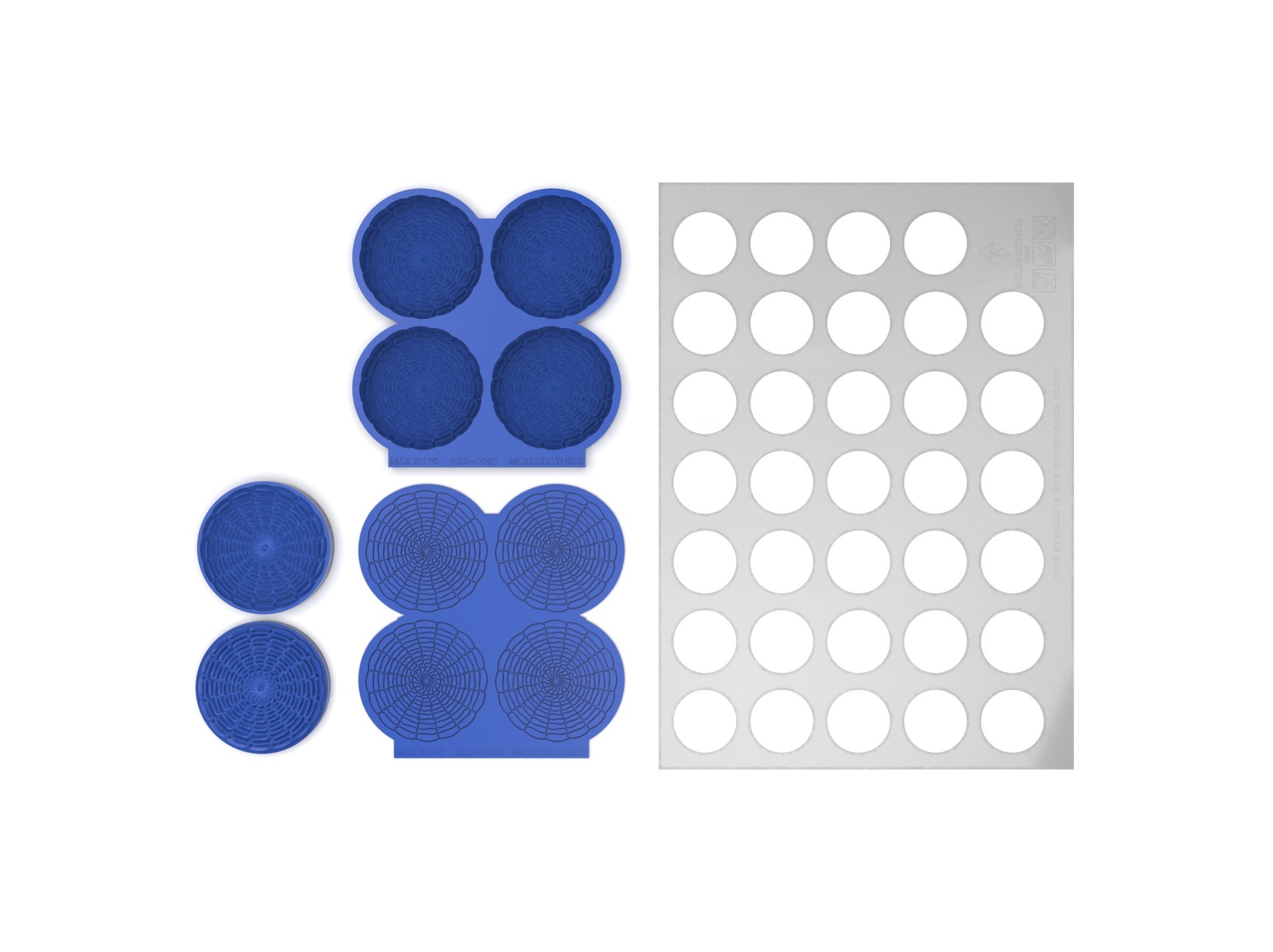 A high-quality silicone mold with the shape of a circular pattern from a piped cream. The mold is 100% food grade silicone.