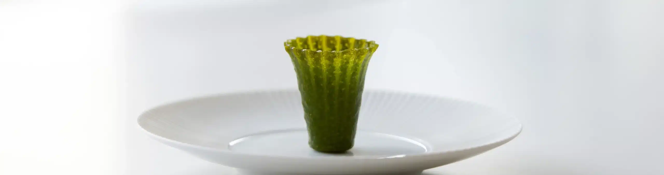 First bring the vegetable broth to a boil and once it’s boiling add the spinach, dill & wasabi paste. Now directly cool this down as fast as possible. Then transfer it into a blender and blend it till smooth (this takes around 3 minutes). Then measure 300 grams into a measuring cub and add the flour, the rice flour, the corn flour, the egg and the salt. Now blend this till it’s a smooth batter. To really insure there are no more lumps and to remove any small air bubbles pass the batter through a fine sieve.